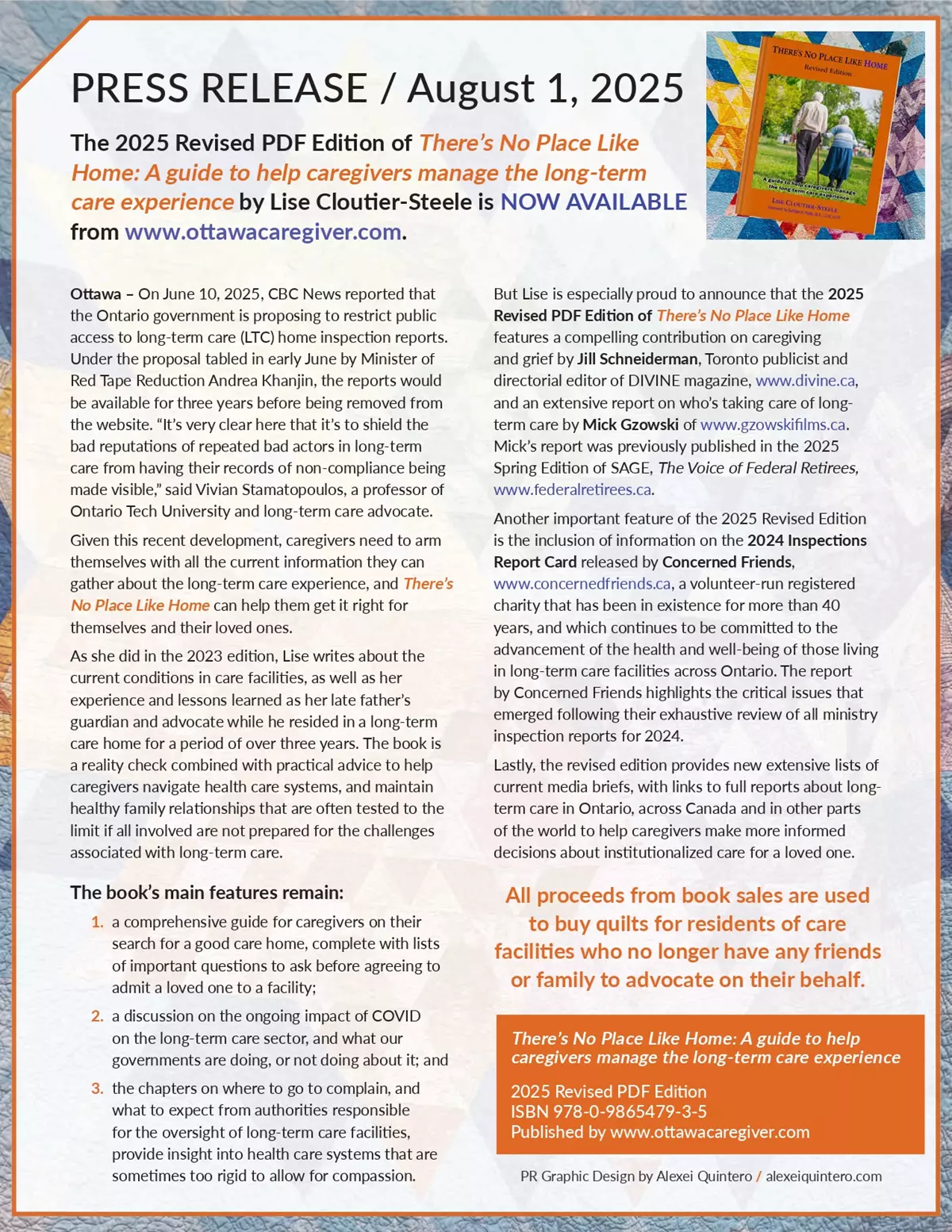 There’s No Place Like Home: A guide to help caregivers manage the long-term care experience is now available in digital format and the method of payment is PayPal.